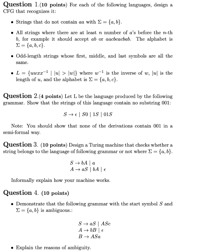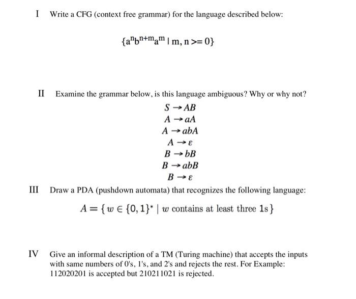 Solved I Write A Cfg Context Free Grammar For The Language Chegg Com