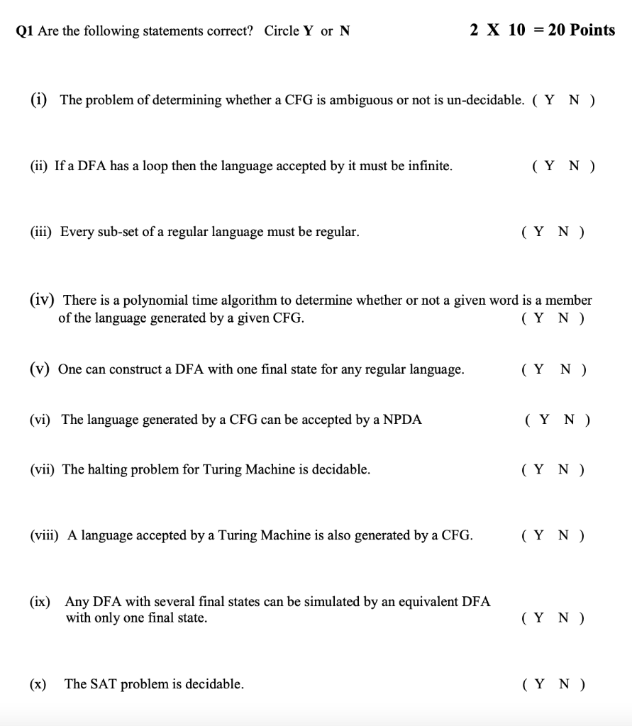 Solved Q1 Are The Following Statements Correct Circle Y Or Chegg Com